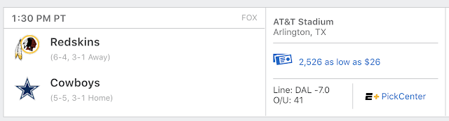 Redskins could improve to 7-4 with an upset. Dallas Cowboys = 74