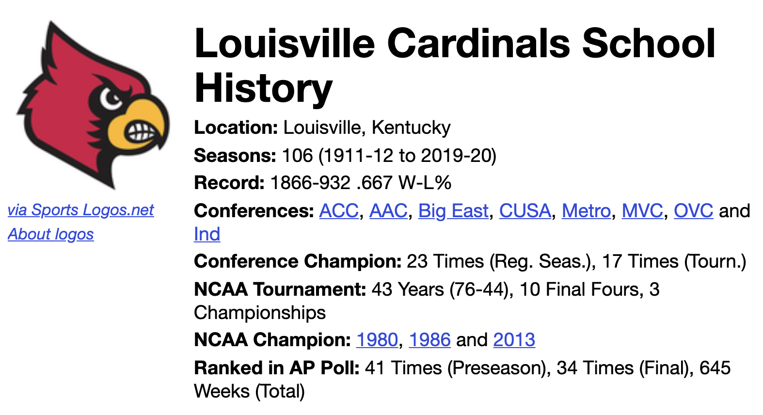 *If Louisville wins the tournament, they will have 82 wins in the event all-time